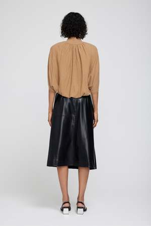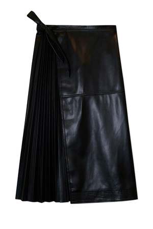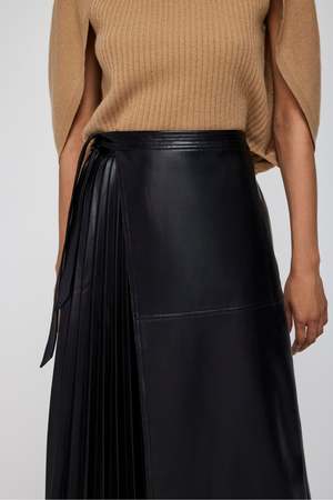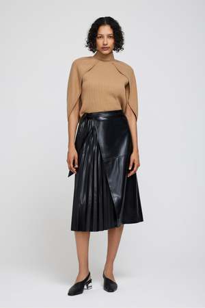 Simkhai Mar Pleated Split Midi Skirt - Black 100% Polyurethane "Coated"