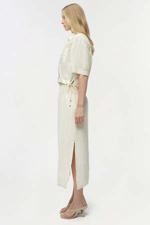 The Ryland Camp Shirt in White Multi is crafted from a wave-texture cotton blend. Its boxy silhouette and oversized sleeves offer effortless volume, while subtle tailoring keeps the shape polished and modern. Pair it with the Huxen Midi Skirt in White Multi to complete the look. Composition: Shell: 50% Cotton, 50% Polyester.