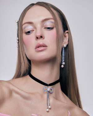 Materials: Rhodium plated brass, Swarovski crystal, Swarovski faux pearl Length: 3" / 7.6cm Made in NYC