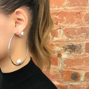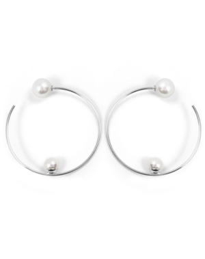 3" Brass Hoops Plated in Rhodium Swarovski Faux Pearl Total Length 3" Made In NYC HD27-02 Rhodium / White