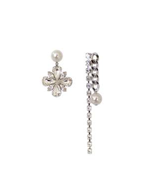 Materials: Rhodium plated brass, Swarovski crystal, 12mm Swarovski faux pearl Length: 1.5" & 3.5" / 3.8cm & 8.9cm Made in NYC RE075-02