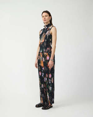 A fitted sleeveless top from Paris-based designer Julia Heuer, smock pleated with an in-house designed print that creates distinctive shading and color variation across each piece. Features a ruffled high neck, ruffled hem, cutout detail at the shoulder, and exposed overlock finishing. Composition: 100% Recycled Polyester. Designed in Paris, Made in Estonia. Measurements Sizing: S/M, M/L. S/M: Shoulder to hem 50 cm / 19.75 in Waist 70100 cm / 27.539.5 in M/L: Shoulder to hem 52 cm / 20.5 in Waist 76120 cm / 3047 in *Measurements reflect the garment with pleats contracted to fully expanded.