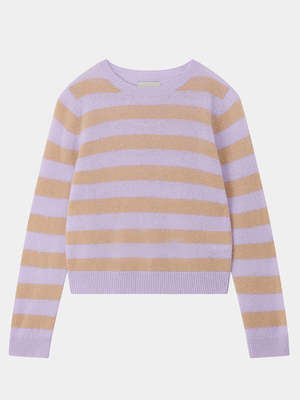 The Stripe Crew Sweater in Opal Foundation from Jumper 1234 is true to size and made from 100% cashmere. It features a crew neckline and ribbed neckline, cuffs, and hem. - 100% cashmere - Crew neck - Striped - Ribbed neckline, cuffs, and hem - Made in China - Hand wash cold; reshape and dry flat