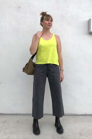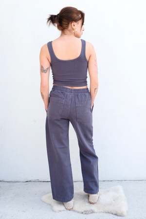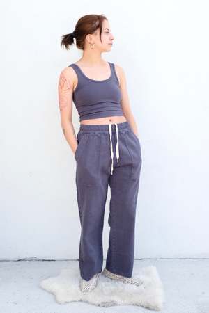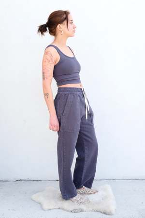 Slouchy wide leg pant with a cropped hem, generous pockets in the front and back, and a pleated elastic waist with an internal drawstring. Made in a soft and sturdy hemp twill. Details: - Unisex fit with a narrow hip, curvier shapes should size up - Garment-dyed - 55% hemp, 45% organic cotton - Made in Los Angeles, USA Haley is 5'2", bust 32", waist 25", hips 35", wearing a size XS About the brand: From roots of simplicity and sustainability, Robert Jungmann created Jungmaven in a sleepy surf town in Central America where the natural rhythms of life seamlessly evolved into the brands mission. With the wisdom that the Earth deserves our love and care, came a passion for hemp fabrics. Jungmaven believes fashion is a form of activism and by creating beautiful, high quality hemp clothing we can choose to choose to use our dollars to demand change.