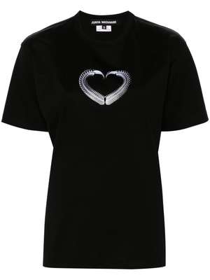 Women > Clothing > Topwear > T-Shirts Black cotton jersey with a crew neck and graphic heart print on the front. Features short sleeves and a straight hem. Composition: 100% Cotton.