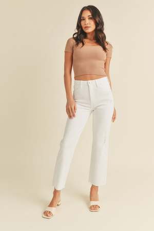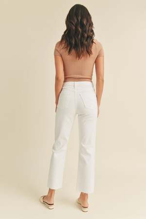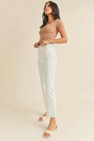 A classic, cropped straight jean with light distressing through the leg. This flattering, high-rise pair is low key enough for brunch, and dress-up ready for a night out. Please note: This item is final sale and not eligible for return. Details: - Rise 11" ; Inseam 26.5" - 99% Cotton, 1% Spandex - Made in USA - Style no. BP331J - Machine wash cold, lay flat to dry recommended
