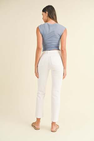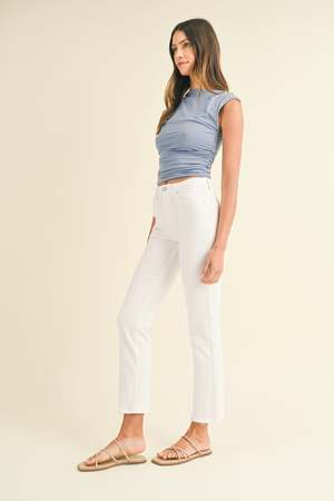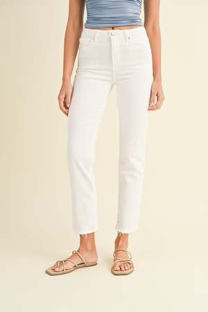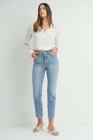 Get legs for days in a high-rise, full leg jean. The trendy straight-leg pair skims the tops of your shoes and cinches your true waist to create a dramatic silhouette. Details - Rise: 10.5 ; Inseam: 28.5 - 92% Cotton, 7% Polyester T400, & 1% Spandex - Made in USA - Style no. BP455J - The model is wearing a size 26 - Machine wash cold, lay flat to dry recommended