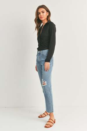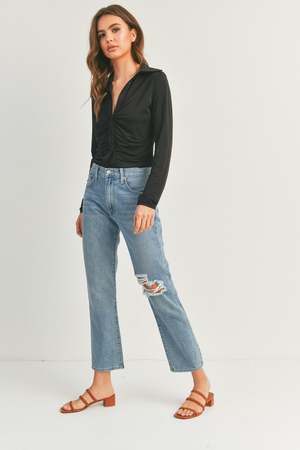 Jump right back into the 90's wearing these non-stretch straight leg jeans. This light wash pair with a high-rise waist and ankle length hem will have you feeling the sun on your skin just like that one summer in '99. Details - Rise 11 ; Inseam 26 - 100% cotton - Made in USA - Style no. BP424N - Model is 510 and wearing a size 26 - Machine wash cold, lay flat to dry recommended