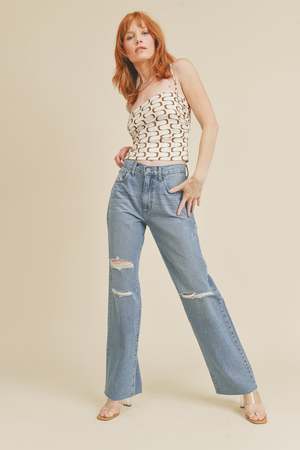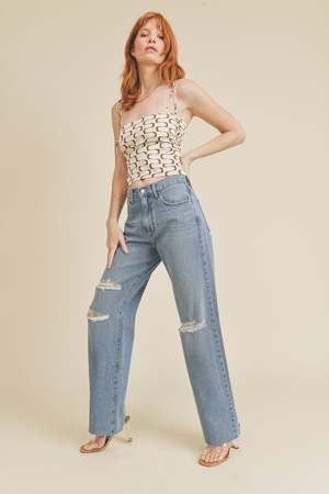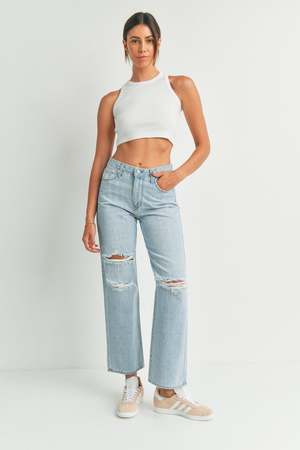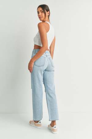 Get into these vintage inspired jeans! The Distressed Long Straight is perfectly high rise in our softest 100% cotton denim, meaning it'll stretch perfectly to your fit after a few wears. Details - Rise 11" ; Inseam 31" - 100% Cotton - Made in USA - Style no. BP378N - Model is 59 and wearing a size 26 - Machine wash cold, lay flat to dry recommended - Not sure what size you are? Find out here