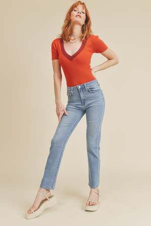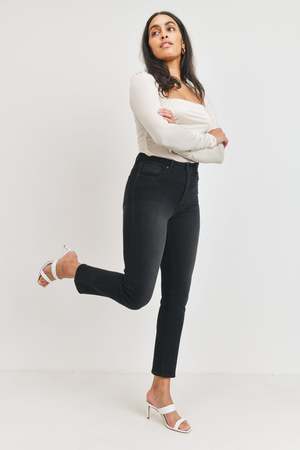 A little bit more form-hugging than a classic straight jean, this pair brings the best of both worlds by flattering curves and leaving a little room to breathe in the leg. Details - Rise 11 ; Inseam 28 - 93% Cotton, 5% Polyester, 2% Spandex - Made in USA - Style no. BP372J - Model is 58 and wearing a size 26 - Machine wash cold, lay flat to dry recommended