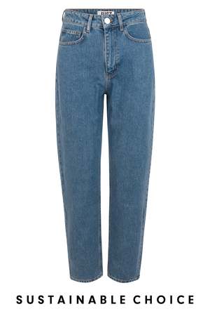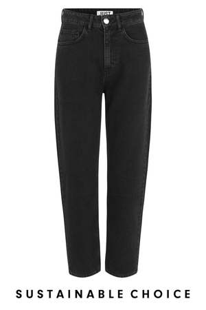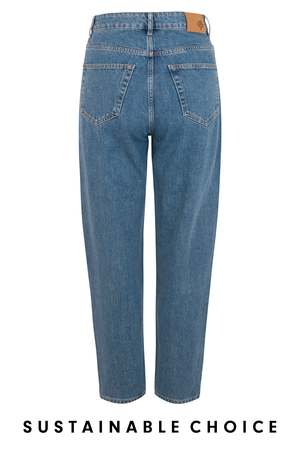 Where: Ethically made in Turkey Material: 100% organic cotton Care: Machine wash cold, do not bleach, tumble dry low heat, shrinkage 5%, wash inside out with similar colors. Details: These jeans have a fixed waistline, belt loops, hidden zipper, and visible silver button. On the back of the waistband is a brown leather badge. Part of the JUST Female SUSTAINABLE CHOICE initiative. Style With: Your favorite white tee and trainers.