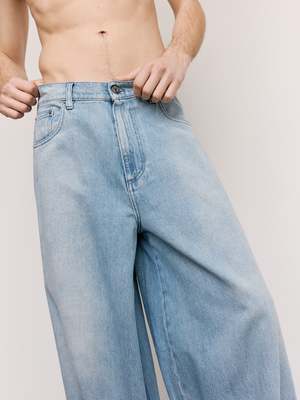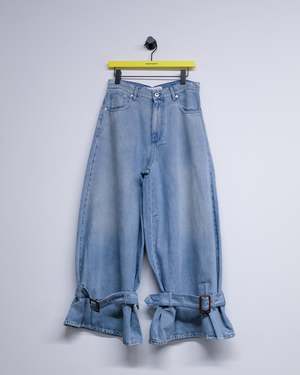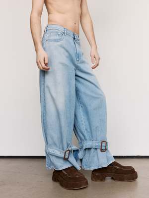 Expertly crafted and designed to elevate any outfit, our Light Blue Buckled Cuff Jeans feature a flattering wide leg silhouette and mid-rise waistline. The belted cuff detailing adds a touch of sophistication, while the leather patch with our logo2 embossed on the back showcases our dedication to quality. Made with a midweight stone wash fabric, these jeans provide an oversized fit for maximum comfort and style.