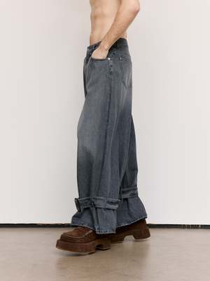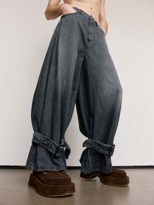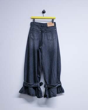 Expertly crafted for comfort and style, the Grey Cotton Buckled Cuff Jeans feature a mid-rise waistline and wide leg silhouette. The belted cuff detailing adds a unique touch, while the mid-weight stonewashed denim offers a stylish look. Complete with a leather patch showcasing the JW Anderson logo2, these jeans are a must-have for any fashion-forward wardrobe.