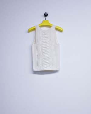 Tank top in midweight white knit. Features a compact, sporty handfeel and racer back design. Viscose / Polyester Blend.