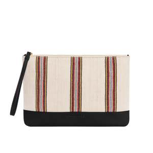 - black calfskin - handwoven fabric - protective sponge form inside - suitable for vacations, everyday use, trips, shopping and others - Size: 28 x 18 cm