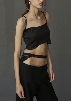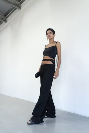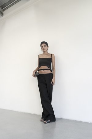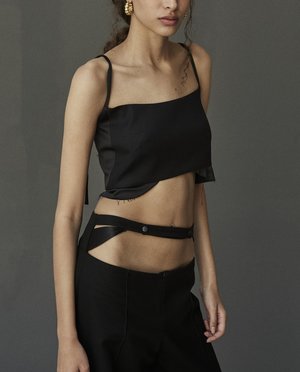 This Roshen Fountain Black Cotton Crop Top is an essential piece featuring enhanced details. The viscose decorative detailing at the bottom adds a unique touch to this stylish top. A zipper closure on the back ensures a perfect fit, while the comforting seam pattern in the front provides a sleek finish, bringing sophistication to an everyday item. Composition 100% Cotton with Viscose Detailing Zipper Closure in the back Model is 181 cm tall and wears M size SIZES: SIZE S (European 36) bust: fits bust around 85 -89 cm Waist: fits waist around 68- 73 cm Hips: fits hips around 92-95 cm For overall height: 175 cm around SIZE M (European 38) bust: fits bust around 90-94 cm Waist: fits waist around 71-77 cm Hips: fits hips around 96-100 cm For overall height: 175 cm Hand wash or dry cleaning Warm iron inside out Do not tumble dry. Handmade in Ukraine by women artisans for women during the war#standwithukraine Each piece in this collectsion commemorates VINNYTSIA the city of birth of KM by LANGE brand, thats why each item has naming to honor this beautiful city. The Roshen Fountain is a multimedia fountain located on the Southern Bug River in Vinnytsia, Ukraine. It was installed by the Roshen Confectionery Corporation, which is one of the largest confectionery companies in Ukraine. The fountain was opened in 2011 and is considered one of the largest floating fountains in Europe. It features a unique multimedia show that combines water, music, and lights, making it a popular tourist attraction.