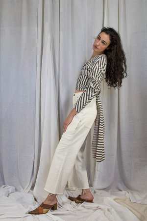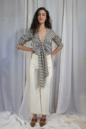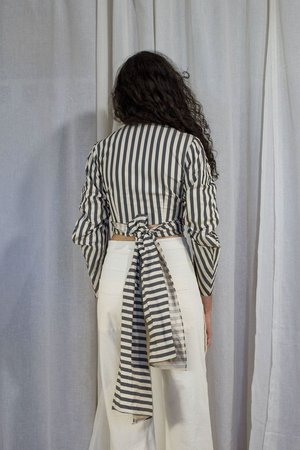RE:Inventory. One Of A Kind. 100% Polyester Redesigned And Finished Using The Aw17 Puff-Sleeve Wrap Dress. Wrap Ties Can Be Styled Many Ways. Item Measures: One Size Fits Most. Joanna Is 5 10 And Size 2/S. Machine Wash. Hang Or Low Tumble Dry. Made in USA.
