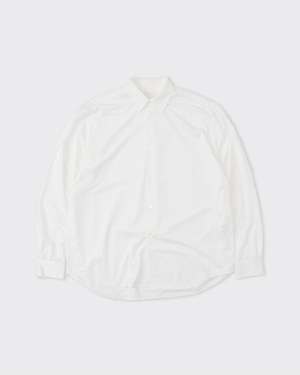 A clean, minimal shirt knit on 46-gauge machines the Modest Shirt lives up to its name with a pared-back design that lets the fabric do the talking. The ultra-dense knit has a subtle sheen and a smooth hand that elevates a simple white shirt into something more considered. Made in Japan. Details - 46-gauge ultra-high-density knit - Clean, minimal collar - Easy-care, wrinkle-resistant - Button-front closure Fabric 64% Recycled Organic Cotton, 36% Nylon.