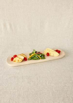The Organic Wooden Rectangle Bread Platter features a long, narrow design with unique rounded edges, making it a versatile addition to your serveware collectsion. Ideal for serving tapas, bread, or as an artful centerpiece, this platter adds nature-inspired elegance to any space.