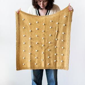 This delightfully thick and plush baby blanket features a chunky woven texture for a contemporary style and feel. The unique knitted bobble decoration adds a whimsical and cheerful touch, making it perfect for decorating a baby crib and providing warmth and comfort.