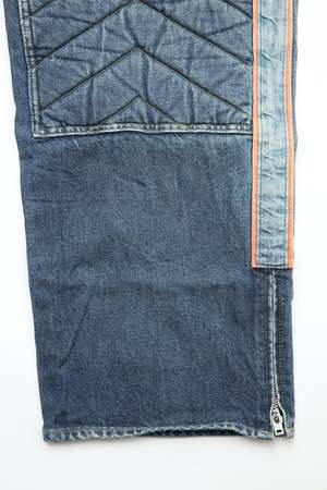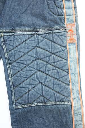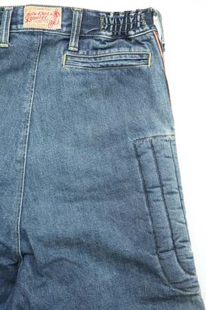 Unleash your inner daredevil with Kapital's 14oz BLKxBLK Denim KOUNTRY Motocross Pants. Made with 100% cotton and crafted in Japan, these pants are perfect for off-road adventures with a touch of style. "TODOTERRENO" (that's Spanish for "all-terrain") is the perfect name for these versatile and comfortable pants. 100% Cotton Made in Japan.
