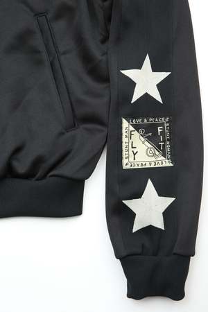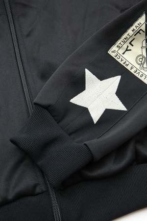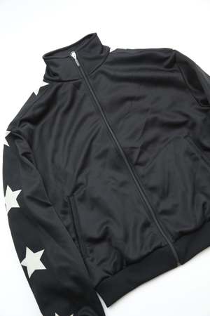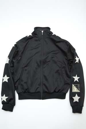 Kapital's Smooth Jersey Standman & Woman Track Jacket features stars along the sleeves. 100% Polyester. Made in Japan.