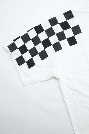 Introducing the Kapital 18.5/-Jersey RACER FLAG HUGE-T in white! The perfect tee for the race-lover in your life, this shirt features a playful racer flag design. Made with high-quality jersey material, it's comfortable and stylish. Rev up your wardrobe with this quirky tee today! 100% Cotton Made in Japan
