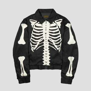 The rayon drizzler jacket is interesting classic zip jacket made from a super soft rayon with great drape that can be worn like a lightweight jacket or a shirt. Each piece has been hand dyed and transferred with the iconic Kapital bones motif. Fits true to size but does fit cropped. - Rayon - Hand Dyed and Transferred - Zip Closure - Cropped Fit - Made in Japan - Black