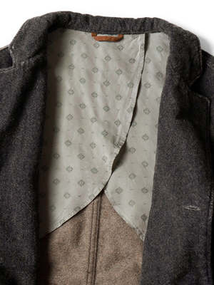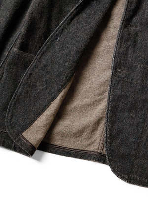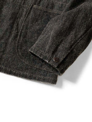 A hospital jacket made from warm heathered wool blend fabric. Half-lined design using original designed cupra. The processing gives it the look of a vintage item that has been used for many years. *This product has been processed as a used item. Any tears or damage caused by processing are intentional in the design and are not product defects. This represents changes due to aging, so there may be signs of weakness in the fabric etc. *This product uses natural leather. Please be careful as there is a risk of dye transfer to clothing due to friction, sweat, etc. 65% cotton, 30% wool, 5% nylon Separate cloth Cupra 100% Separate cloth 100% cotton Size in Centimeters Size Body Length Back Shoulder Width Chest Hem Sleeve Length Rib size2 72 43 108 112 65 15.5 size3 74 45 112 116 67 16 size4 76 47 116 120 69 16.5 Size in Inches Size Body Length Back Shoulder Width Chest Hem Sleeve Length Rib size2 28.3 6.3.9 42.5 44.1 25.6 6.1 size3 29.1 17.7 44.1 45.7 26.4 6.3 size4 29.9 18.5 45.7 47.2 27.2 6.3.5
