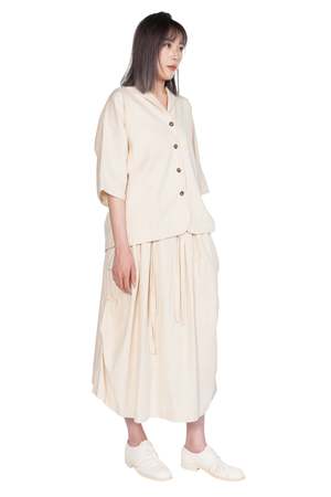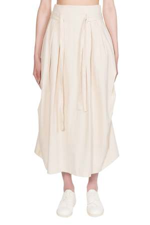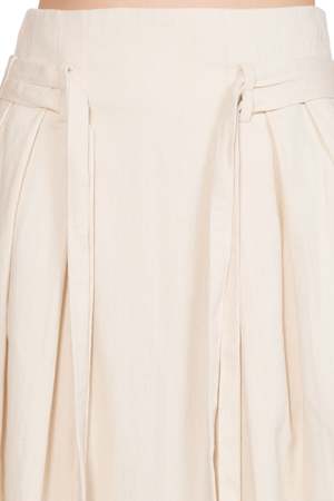Kar Cotton Side Pleated Skirt. Lace up fastening detail at waist. Zip closure at waist. Two side pockets. Side pleats at sides. Slightly longer at front. Pleats at front. Colour: Ivory. Composition: Cotton
