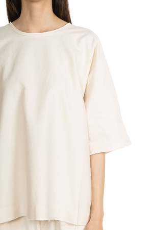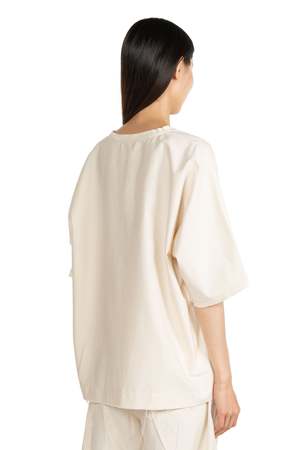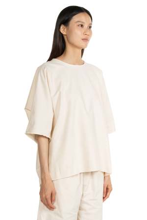 Kar Cream Cotton T-Shirt. Short sleeve. Boxy fit. Round neck. Raw edges. Colour: Cream. Composition: Cotton.