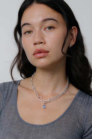 A versatile two-in-one jewelry piece that can be worn as a necklace or converted into a bracelet by detaching a section at the hinged link. The Ami Charm is attached to the hinged link on the necklace. Ramona Necklace: - Silver Plated Brass (15 microns) - 16.5" length; 7.5 of chain is removable to convert the necklace into a bracelet - Closure: Hook and Eye Ami Charm: - Sterling Silver - Spinel (lab-created)