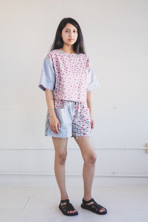 This series is made of patched floral quilting cottons that Kassandra sourced from small quilting stores. The Liberty quilting fabrics are seasonal and printed in limited quantities, making these pieces that much more timely and special. Ana is 5'3" with a 32" bust, 27" waist, 36" hips and typically wears a size 2 dress or pants. She's wearing the Patch Shirt in size small. - 100% Liberty Print cotton. - Machine wash cold, line dry. - Made in New York City. - S: 21.5" bust, 21" waist, 18.75" from top of shoulder to bottom hem, 28.5" sleeve. - M: 22.5" bust, 22" waist, 19.5" from top of shoulder to bottom hem, 29" sleeve. - L: 23.5" bust, 23" waist, 19.75" from top of shoulder to bottom hem. *Measurements taken flat and un-stretched.