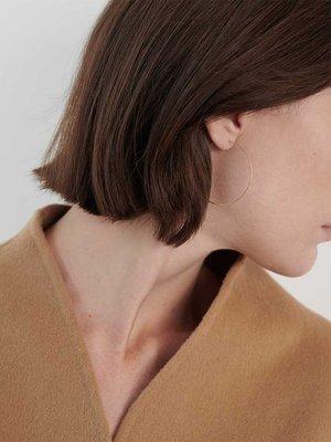 thin stretched 14k yellow gold wire 1.5" hoop earrings. sold as a pair. made in los angeles. kathleen whitaker