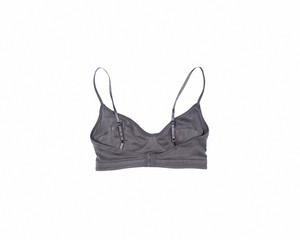 BOOM organic silk balconette style soft bra with adjustable straps and adjustable hook and eye back closures. Soft yet highly supportive. Triple-lined empire band and double-lined cups offer significant support. Defined seams and adjustable straps. Organic silk warp net detailing at side. 95% certified organic silk, 5% elastane. Hand wash for longer life, and lay flat dry. Made in Los Angeles.