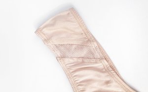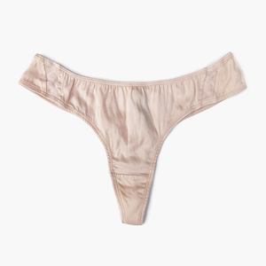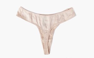 Luxurious, organic, pale pink silk thong with subtle mesh detailing.