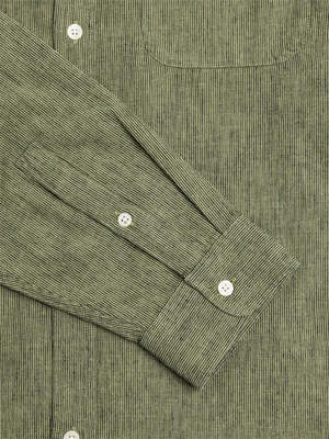 The Raeburn is Kestin's signature button-down shirt, with a curved shirttail hem and a single patch pocket at the chest. This shirt is made from a lightweight, soft blend of 55% linen and 45% cotton with a cross-hatch woven nep texture, overdyed in a vibrant green colorway. FIT Regular Fit 55% Linen, 45% Cotton Chest pocket Button-down design Made in Portugal