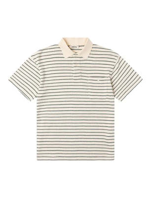 Originally introduced for SS25, the Dunn is Kestin's take on a classic polo shirt, blending it with jersey to make a casual, comfortable layer. It has a ribbed collar and sleeves, two buttons to the neck, and a buttoned chest pocket. This version of the Dunn is made from lightweight, breathable 100% organic cotton in a knitted and subtly perforated pointelle fabric with a stripe pattern. FIT - Regular fit - 100% organic cotton - Pointelle fabric - Buttoned chest pocket - Made in Portugal