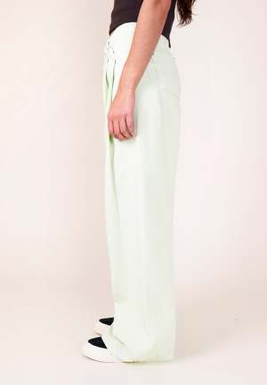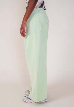 Kijun Wide Tuck Pant - Lime Kijun means 'standard' in Korean, a nod to their mission of presenting a new standard of fashion from the past. Kijun clothing takes inspiration from the fashion most prevalent in the 80s and 90s in Seoul, South Korea. Playful and bold, with a sportswear feel - we're excited to have the latest Kijun range available exclusively at GAG in NZ. Sizing: Wide - Shop to size Materials: 100% Cotton - Perfect summer trousers - Paired with the 'Charlotte Blouse - Ivory' - Wide-leg fit - Pleates