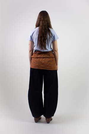 The Dart Denim is an elevated take on a barrel leg pant. Cut from heavy denim in a raw, dark wash, it features an inset side panel and darting detail at the front, back, and interior knee for a flattering fit. The pant is finished with chrome dome rivets and extra wide belt loops. Cutline Indigo Rinse Fit guide These pants run slightly large; we recommend sizing down from your standard numerical size. Emma is 5'6", 145 lbs and wears a size 27. Alyssa is 5'10", 130 lbs and wears a size 27. Fabric care information Machine wash cold, hang to dry. Fabric information 100% Cotton