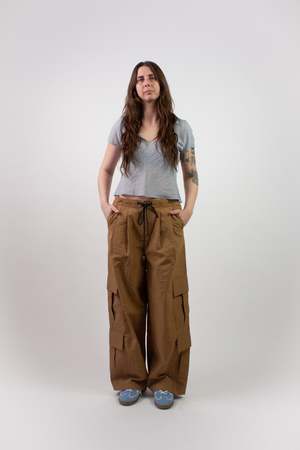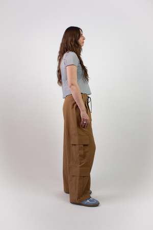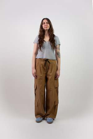The Baslat Pant is a playful take on a utility cargo. Cut in a lightweight striped seersucker, this pant has a wide-leg fit with double front pleats for extra volume and attitude. It features two top-applied cargo pockets on each leg, slash pockets at the side seams, and two hidden welt pockets at the rear. The Baslat Pant has a zipper and button center front closure, as well as a bungee-style corded belt that provides an adjustable fit and styling detail. Machine wash cold and hang to dry.