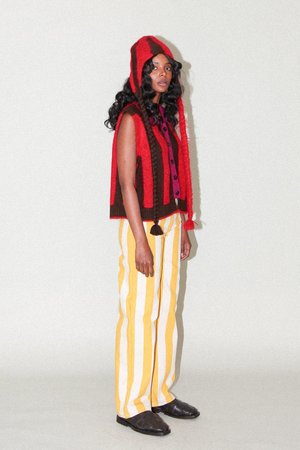 - Knit in Peru - Alpaca / Merino Wool blend yarns - Fuzzy brushed out finish on the red stripe - Earflap covers - Exaggerated long braided ties Size & Fit - One Size *Please note that all Archive Sale items are final sale