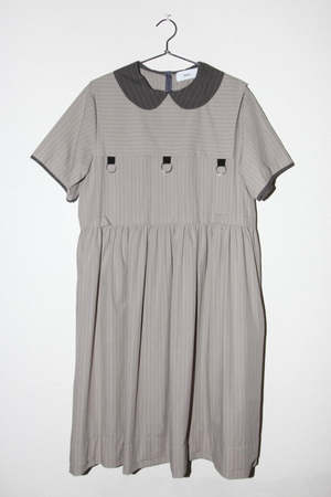 This dress features subtle pin stripe detailing that adds a touch of refinement and texture to the garment. Crafted with meticulous attention to detail, the Pumice Dress is adorned with metal circle hardware details that lend a hint of edgy flair to the overall look.