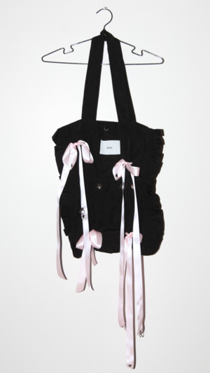 The Recital Utility Tote is the perfect accessory for any occasions - from beach days to brunch dates, you name it! The black bag is adorned with sweet ruffles and baby pink satin bows, so you can be chic and sassy without even trying! - Made in Los Angeles - Nylon Taslan - Ruffle detail - Four cargo style pockets - Interior zipper pocket - Pierced ribbon detailing that can be worn bowed or untied - Cinched detailing from pierced ribbon Size & Fit - One Size - 17" x 17" interior size