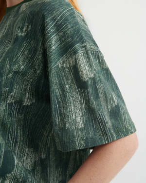 Oversized. Relaxed. Artful. A short-sleeve tee with a very oversized fit, finished with a classic ribbed crew neck. Crafted from midweight organic cotton jersey in our Brushstroke print for effortless everyday style. An artful touch. - Made from midweight 190gsm organic cotton jersey - Very oversized fit - Short sleeve with drop shoulder - Ribbed crew neck Plastic-free / 100% Fair Trade organic cotton. Organic, Fairtrade certified cotton forms the base of Kowtow garments, along with a considered collectsion of trims and buttons chosen for their natural and recyclable nature, making Kowtow garments completely plastic-free. Our organic cotton is grown using non-genetically modified seeds, without harmful chemicals. Care: Spot clean where possible or machine wash on a cool cycle with similar colours. Organic cotton may crinkle after washing; a steamy iron will help to restore it.