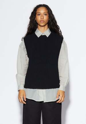 A sleeveless unisex vest made from organic cotton and knitted in a tuck stitch. The Alma Vest has a straight fit through the body, and is finished with deep splits at the hem. A low cut armhole makes it perfect for layering over your favourite shirt or tee. COMPOSITION Certified 100% Fairtrade organic cotton tuck stitch knit SIZE & FIT Designed for a standard fit Hisaki is 6'1" wearing a Kowtow size S ABOUT KOWTOW Founded in New Zealand, Kowtow is a contemporary womenswear entirely committed to fair trade production, and designs with longevity in mind. Kowtow's garments are made in a transparent supply chain, which works with fair trade certified farmers and manufacturers from seed to garment with organic, renewable, and biodegradable fibers. Founder, Gosia Piatek, aims to bring innovation, preservation, restoration, and circularity to the clothing industry. All of Kowtows cotton is organically farmed and free from chemical sprays and genetically modified seeds to benefit the soil and farmers. The label uses only sustainably sourced trims and buttons made from recycled hemp as well as prints and fabrics by GOTS approved inks and dyes, free from chlorine bleach, toxic heavy metals, formaldehyde and aromatic solvents. Since Kowtows inception in 2006, they have only ever worked with two manufacturers in India, both SA8000 certified. SA8000 helps ensure the workers at their production facilities receive guaranteed minimum wage, benefits, workers union and a safe working environment.