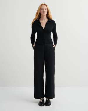Ribbed. Soft. Considered. Knitted from organic cotton rib for comfort, gentle structure and a close fit. Finished with a standard collar, elongated sleeves and nut buttons through the front for a refined, everyday layer. Wear simply, stand out.