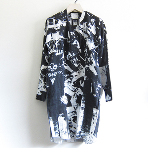 Designed in Copenhagen and handmade by skilled artisans in Italy, Kristensen du Nord uses only the highest quality natural fibres and, keeping to the brand's 'no surprises' adage, all products are subjected to a unique double-wash treatment, giving each piece a character of its own, a soft and beautiful hand feel, and the promise of a consistent fit throughout its lifetime. Relaxed fit printed linen dress featuring a stand collar, side seam pockets, dolman sleeve with cuff opening, and asymmetric shirt-tail hem. Washable. 41" L (measured from high-point-shoulder) 100% linen Made in Italy. See more goods from Kristensen du Nord Kristensen du Nord bio