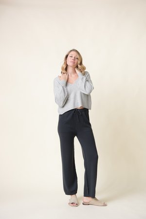 Kristensen du Nord drawstring cashmere pants. 98% cashmere, 2% wool pockets. ribbed hem at bottom. made in Italy.