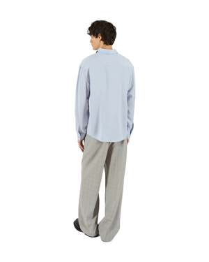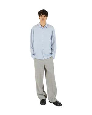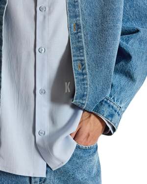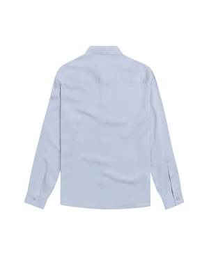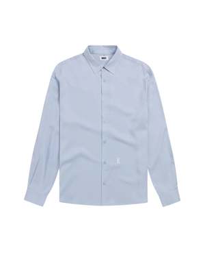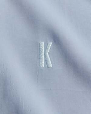 The Jordan "K" Shirt from KROST, New York. Details Smooth Tencel shirt with a pointed collar, curved hem, and clean silhouette. A subtle embroidered "K" at the front adds a quiet branded detail. 100% Tencel.